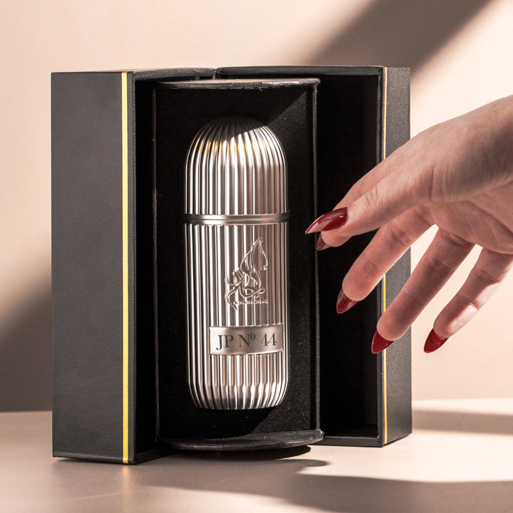 Perfume JP No. 44 is a sophisticated French masculine fragrance that embodies strength and elegance. It opens with a refreshing burst of bergamot, elevated by the spicy warmth of ginger for an energetic and bold start. The heart reveals the refined scent of jasmine, while the base of cedarwood adds depth and lasting masculinity. A perfect choice for the modern, confident man.